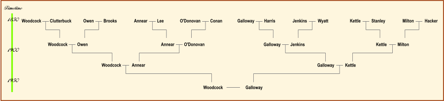 The chart below shows, in four generations, some of the many other surnames connected to our Woodcock